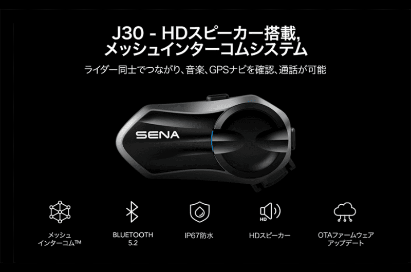 SENA J30:メッシュ通信対応で大人数ツーリングにも対応する高コスパモデル