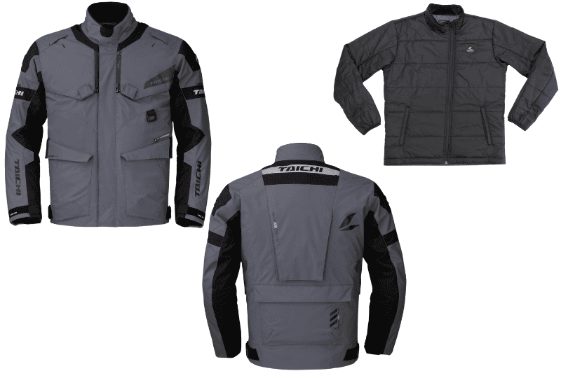 さらに、前面2ヶ所・背面1ヶ所に防水ポケットを装備。手荷物をまとめて収納できるため、バッグなしでのツーリングも快適です。中綿入りインナージャケットは着脱可能で、単体でも着用できる設計。寒暖差の激しい季節や長距離ツーリングでも、これ一着で柔軟に対応できます。悪天候に強く、通気性・保温性・収納性をすべて備えたこのモデルは、まさにRSタイチの“オールラウンダー”。ライダーを天候から守る信頼の一着です。