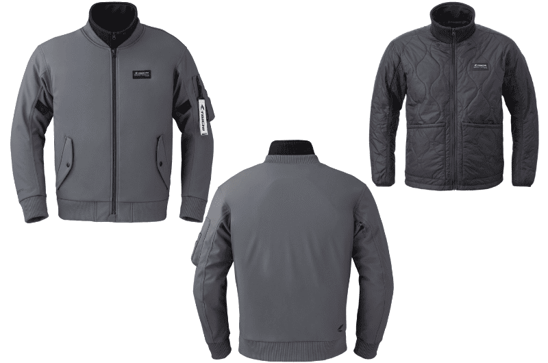 定番のMA-1スタイルをライディングウェアとして再構築した「RSJ734 ソフトシェル フライト ジャケット」。防風性とストレッチ性を兼ね備えたソフトシェル生地を採用し、見た目はスマートながら、バイク走行時に必要な可動性と快適さをしっかり確保しています。アウターには防風・撥水加工が施され、インナーには中綿入りの保温ジャケットを内蔵。二重構造の3WAY仕様で、真冬から春先までシーズンを跨いで着用できます。インナー単体でも着られるため、ツーリングの休憩時や街歩きにも対応する万能モデルです。